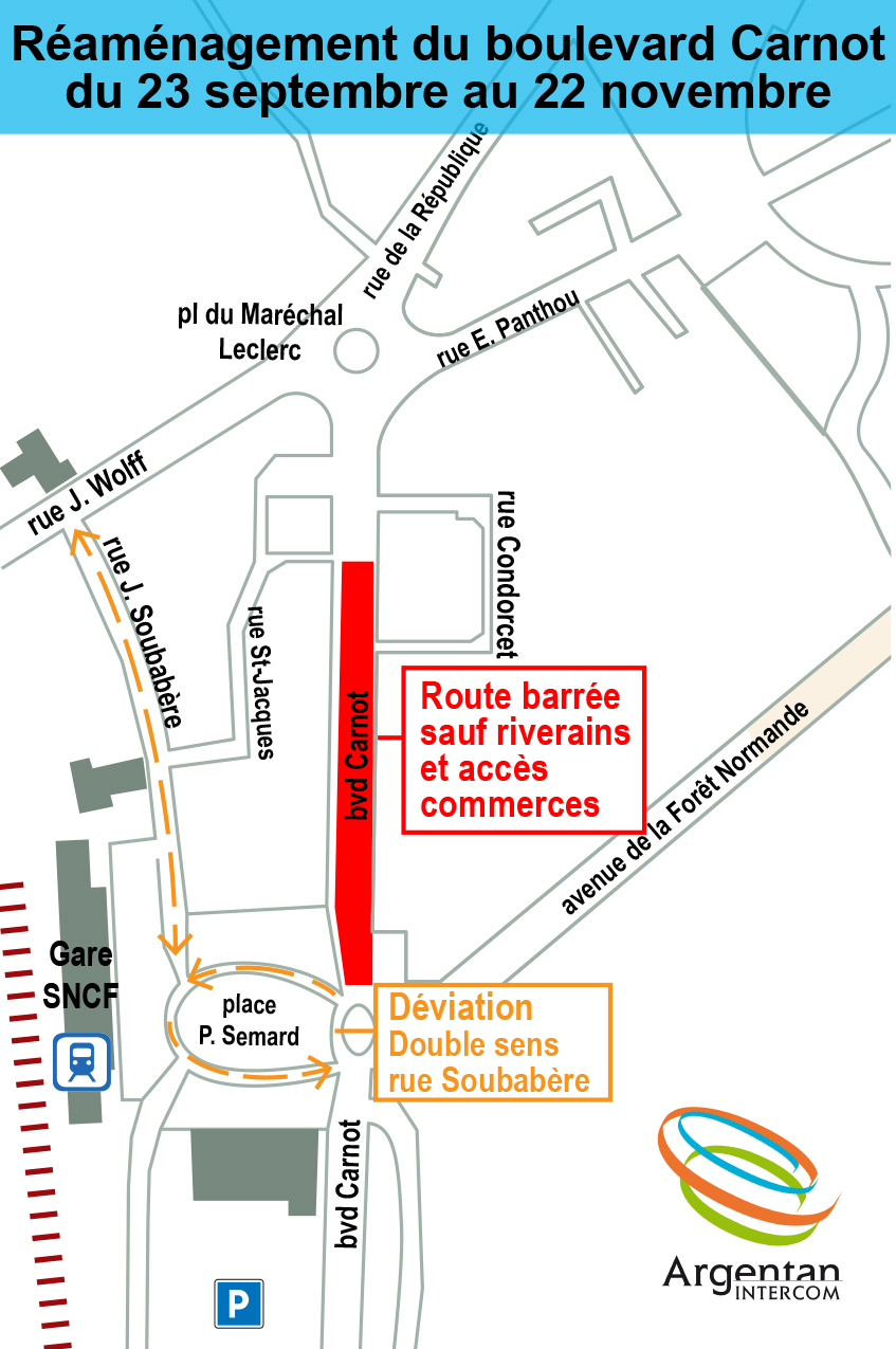TRAVAUX BOULEVARD CARNOT : Circulation modifiée du 23 septembre au 22 novembre